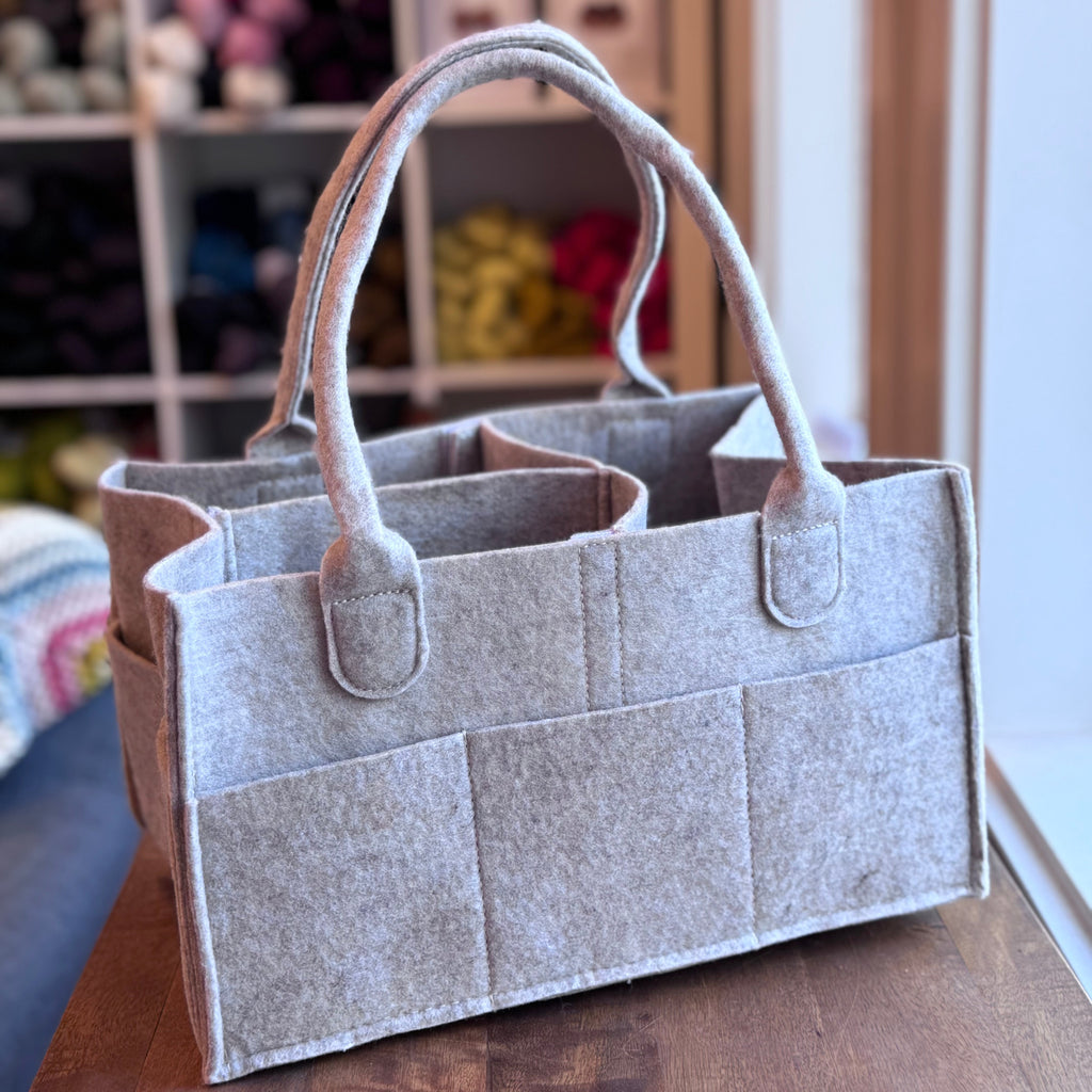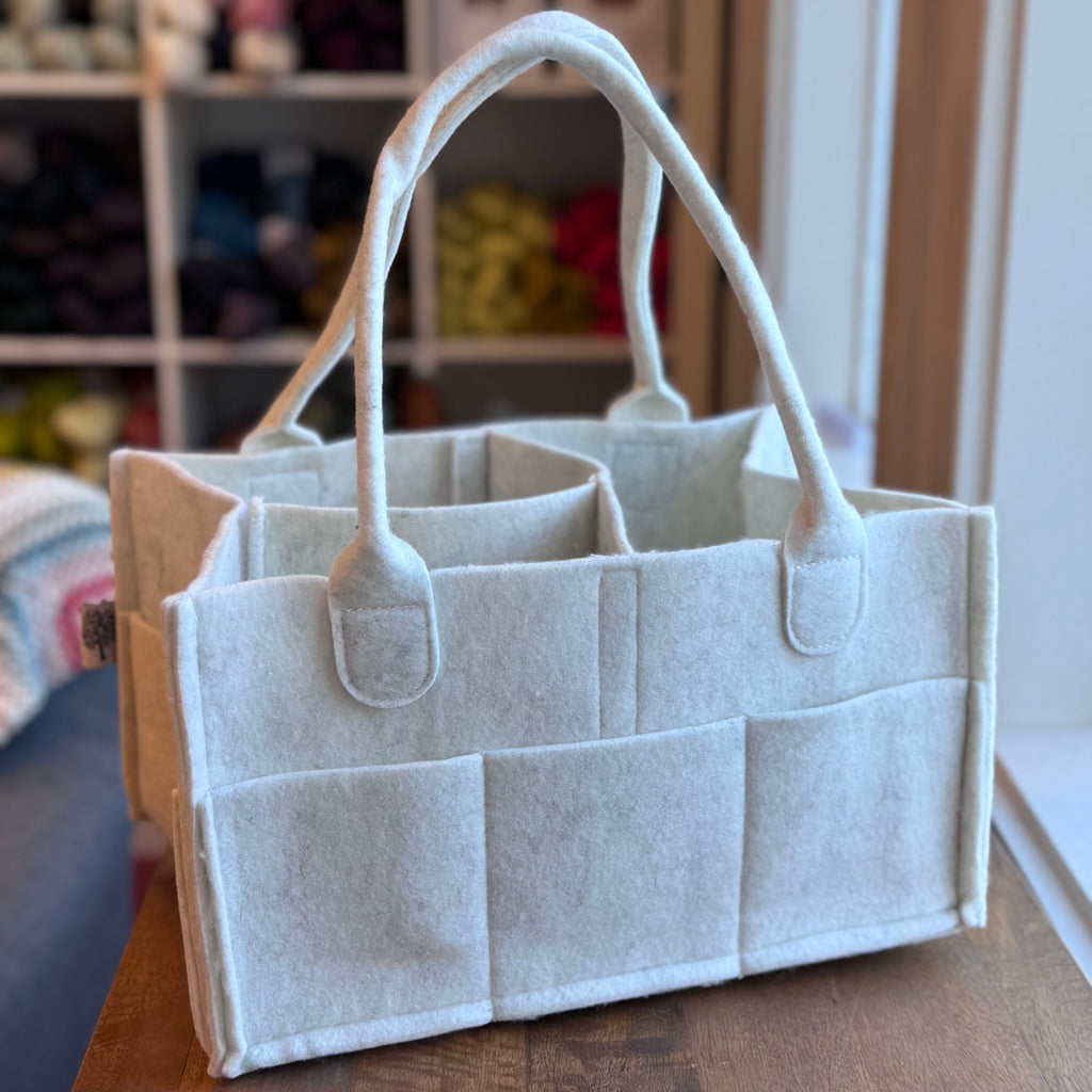 The Maker’s Caddy is the perfect mini tote for keeping your WIP and essential tools organized. Its stand-open shape and handy pockets make couch-side stitching a breeze, while the removable insert adds versatility for every kind of maker. I use mine as my "house handbag" that I carry from room to room. It carries my knitting and needlepoint projects, day timer, pens, water, hand cream, lip balm and ear buds. A thoughtful companion for cozy crafting, anytime. (See why I love mine so much in our blog!)