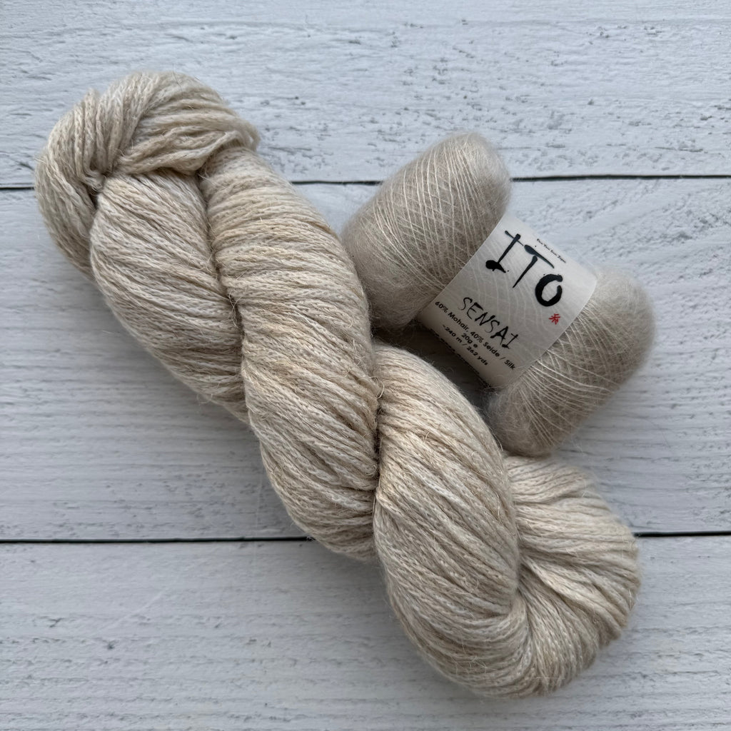 This darling scarf is the perfect finishing layer. Knit flat with a beautiful textured motif (and a helpful video tutorial!), it’s as enjoyable to make as it is to wear. We’re pairing Woolfolk Stra with ITO Sensai for a fabric that’s incredibly soft with the loveliest halo. A little luxury you’ll treasure all season long.
