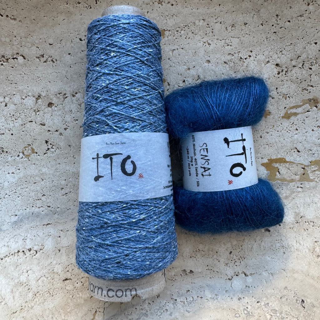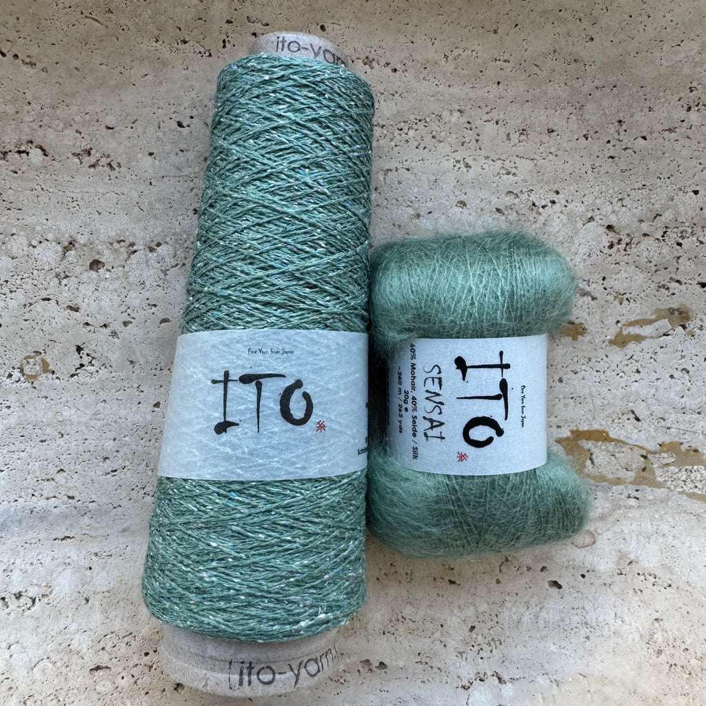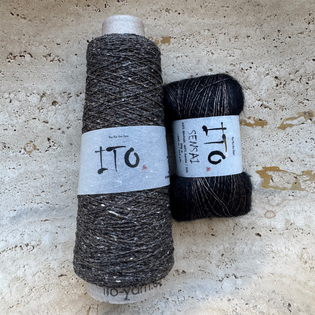 The Lille Kolding shawlette by Chris Berlin is the perfect lightweight layer for moving between seasons. We’re knitting ours in a dreamy pairing of ITO Kinu and ITO Sensai, blending crisp texture with a soft halo in the most elegant way. Molly knit hers by working through half of the Kinu yardage before beginning the decreases, creating a beautifully balanced shape and flow. Minimalist and refined, this design offers just the right amount of interest, an effortless piece that’s a joy to knit and easy to wear again and again.