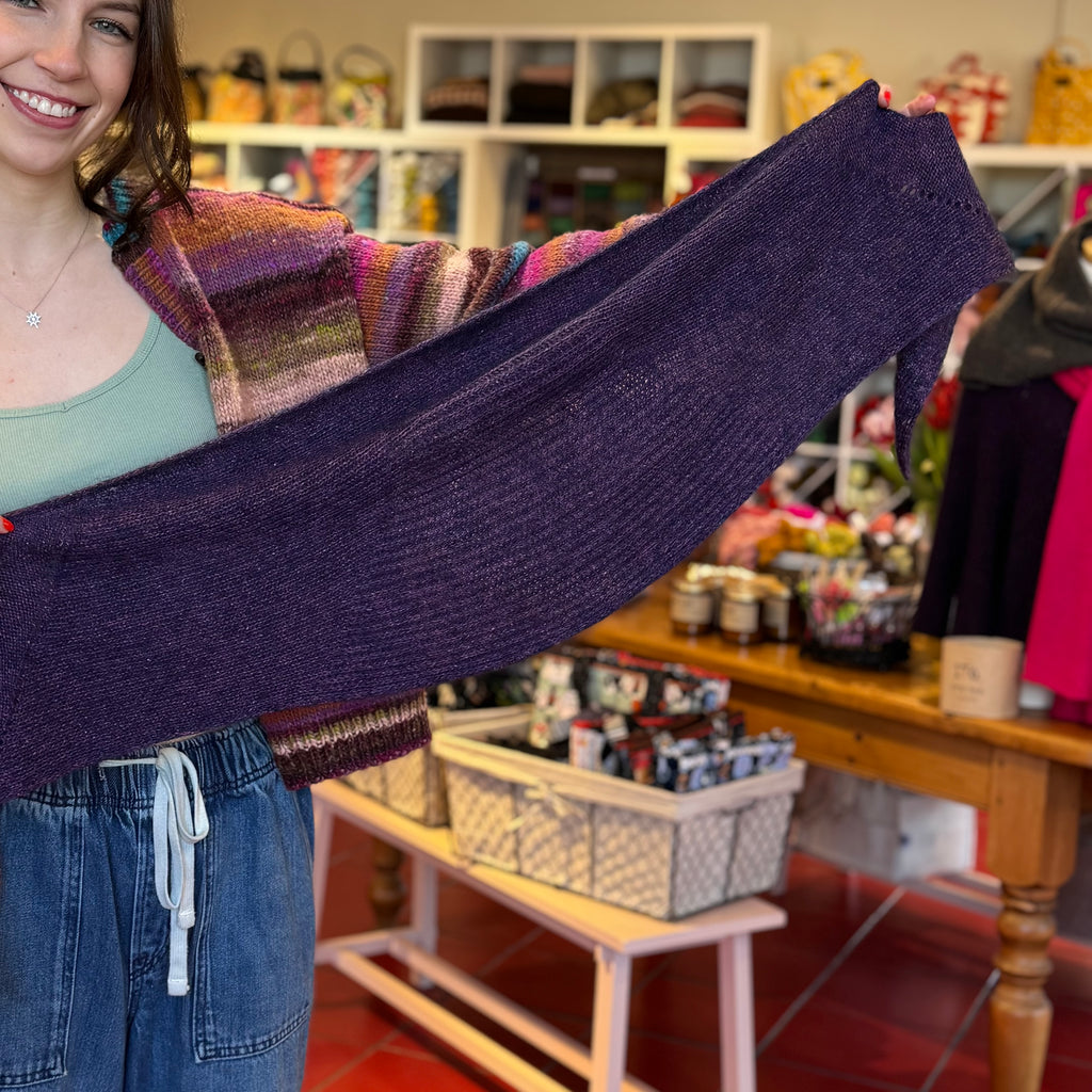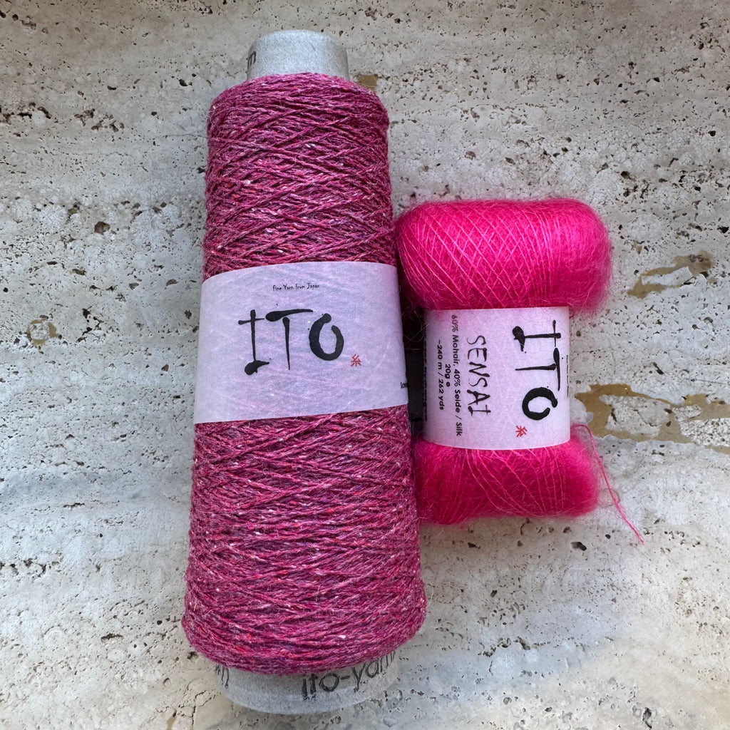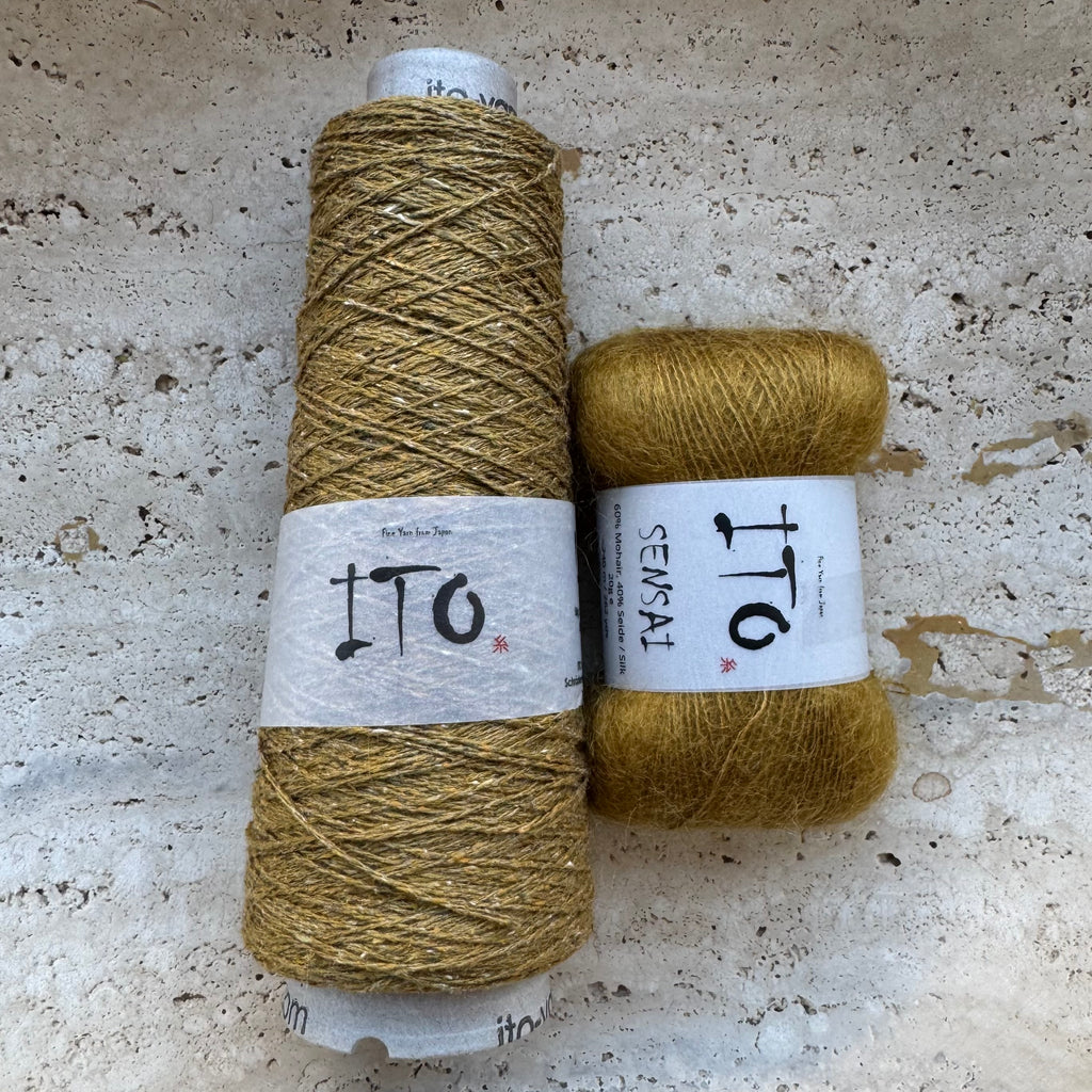 The Lille Kolding shawlette by Chris Berlin is the perfect lightweight layer for moving between seasons. We’re knitting ours in a dreamy pairing of ITO Kinu and ITO Sensai, blending crisp texture with a soft halo in the most elegant way. Molly knit hers by working through half of the Kinu yardage before beginning the decreases, creating a beautifully balanced shape and flow. Minimalist and refined, this design offers just the right amount of interest, an effortless piece that’s a joy to knit and easy to wear again and again.