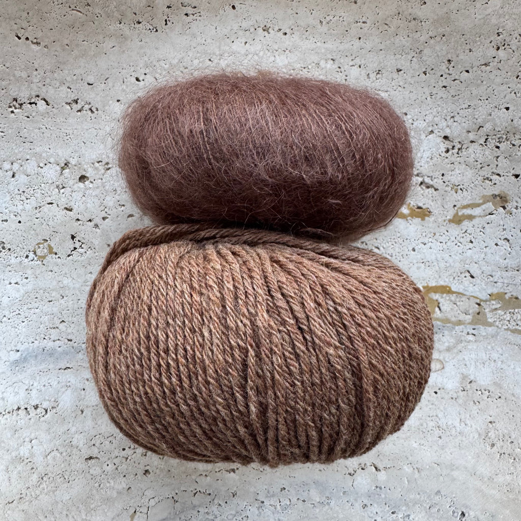 - for 2XL, one more ball of Heavy Merino and one more ball of Silk Mohair.