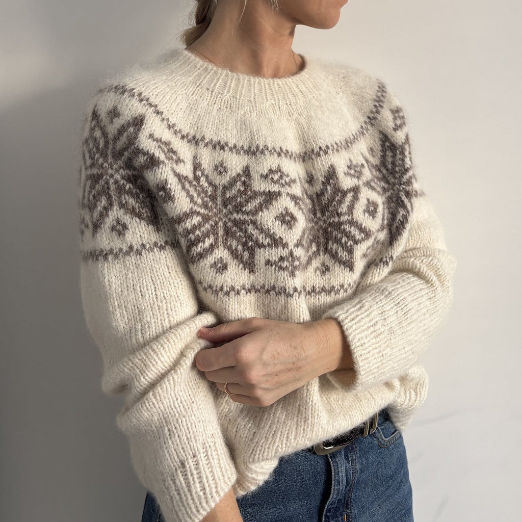 If you’re dreaming of a soft, snuggly sweater for the season, the Nordic Snowflake Sweater Chunky is the perfect cast-on. This top-down, oversized design features a sweet snowflake yoke and simple colorwork that’s approachable for newer knitters and relaxing for seasoned ones. We’ve paired Woolfolk Far with KFO Soft Silk Mohhair for a deliciously soft, cloud-like fabric you’ll want to live in all winter long. A festive, heartwarming knit for the coziest months of the year.