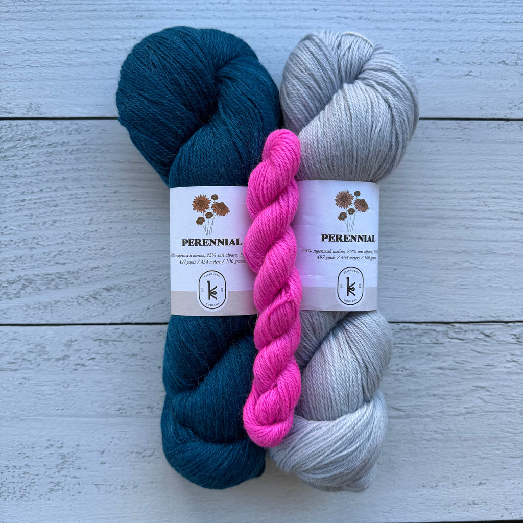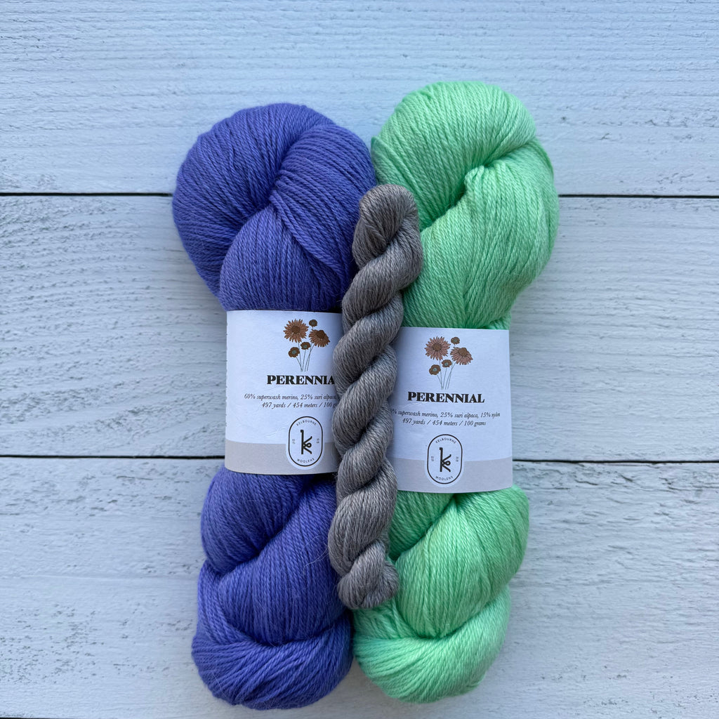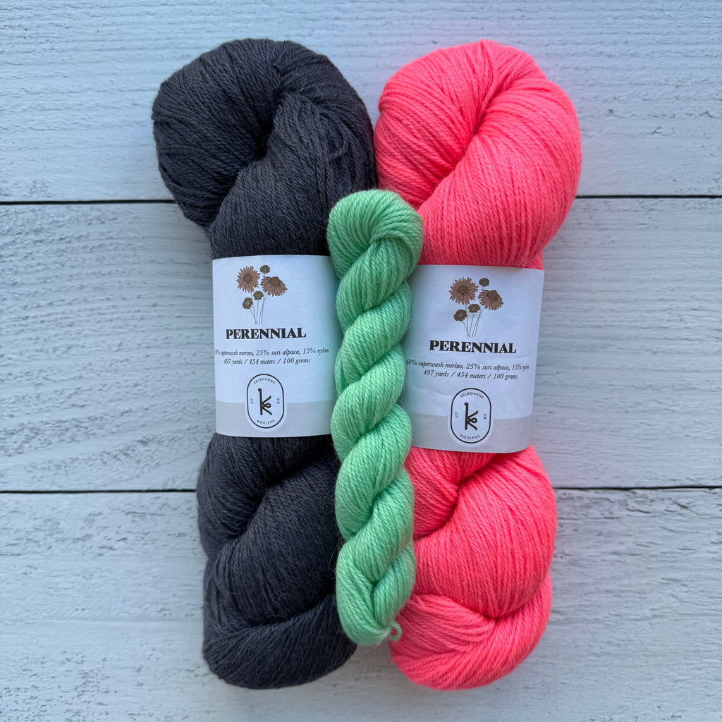 Socks or art? Why not both! Inspired by painter Milton Avery’s March in Red, this fun pattern combines bold colorwork with beautiful design. Our kits include three colors of Kelbourne Woolens Perennial making it easy to cast on your own little masterpiece!