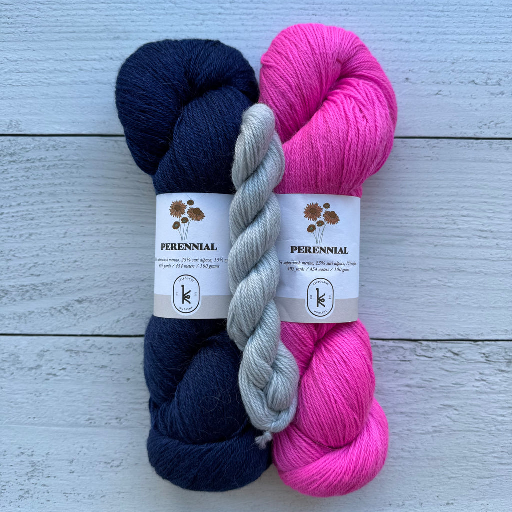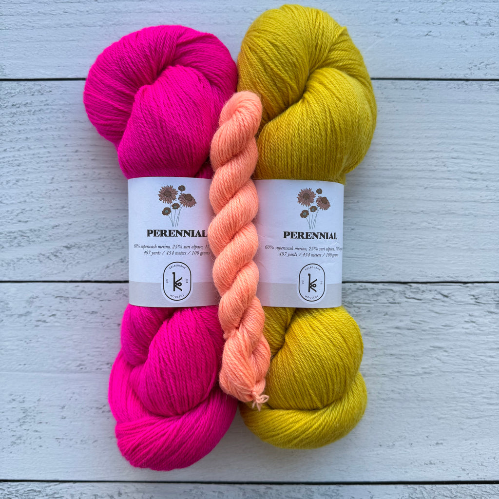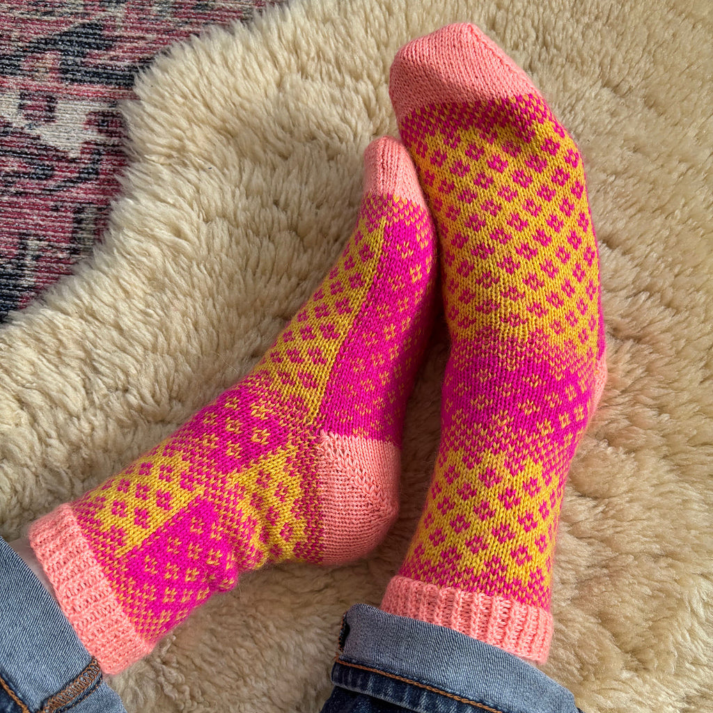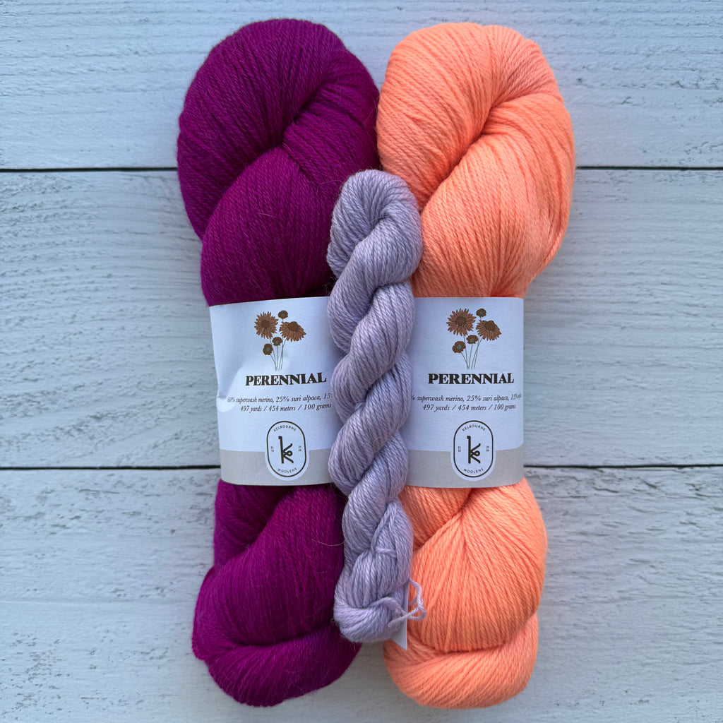 Socks or art? Why not both! Inspired by painter Milton Avery’s March in Red, this fun pattern combines bold colorwork with beautiful design. Our kits include three colors of Kelbourne Woolens Perennial making it easy to cast on your own little masterpiece!